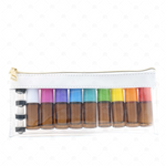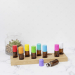Inhalt: 9 x Braunglas 5ml Roller mit hochwertigen Edelstahlkugeln und mehrfarbigen Kunststoffdeckel und durchsichtigem Reissverschlussetui.