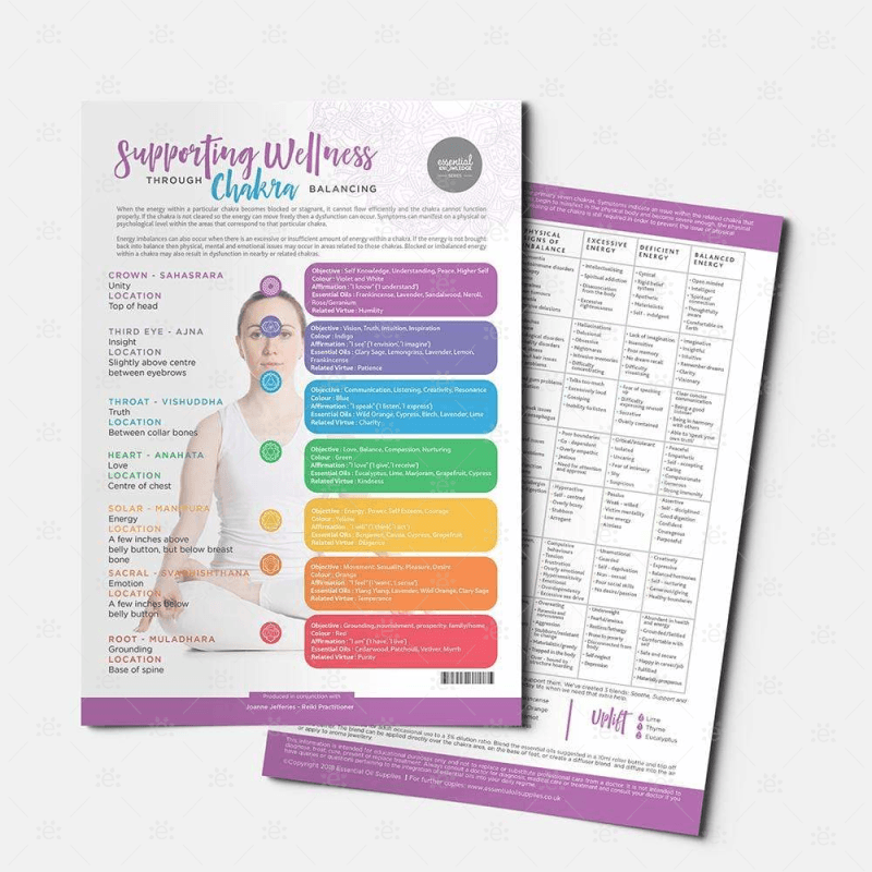 Diese Chakra Blätter sind eine grossartige Referenz sowohl für Anfänger als auch für Fortgeschrittene, um die Chakren (Energiezentren) im Körper besser zu verstehen, zu klären und auszubalancieren.