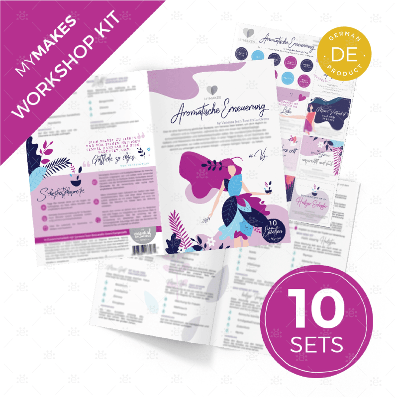 MyMakes sind ideal, um sie persönlich zu verwenden, um Ihre Verwendung von ätherischen Ölen zu ergänzen, oder um sie in einem Workshop oder einer Veranstaltungsumgebung zu schulen, in der Kunden herstellen und kreieren können, woraufhin sie dann die restliche Broschüre und Etiketten mitnehmen können, um sie zu inspirieren, ihre ätherischen Öle mehr zu verwenden.