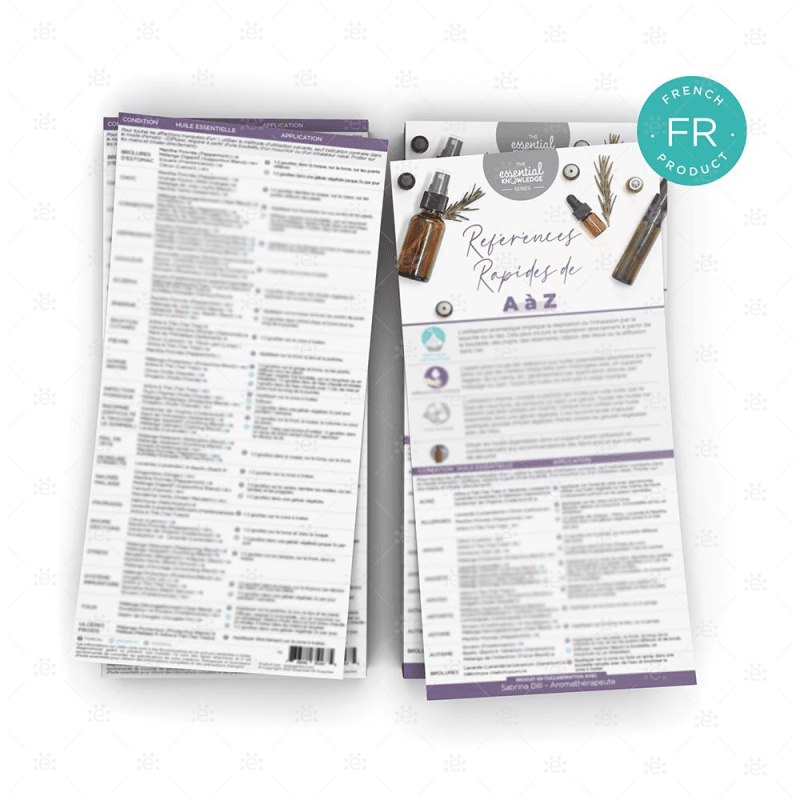 Ces guides de référence pratiques à double face sont des cartes éducatives idéales et une introduction à l'utilisation des huiles essentielles pour les affections les plus courantes.