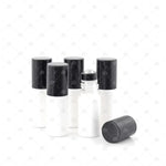 Inhalt: 1 x 5ml mattweisse Roller, Premium Edelstahlkugeln und schwarzen metallic Deckeln.