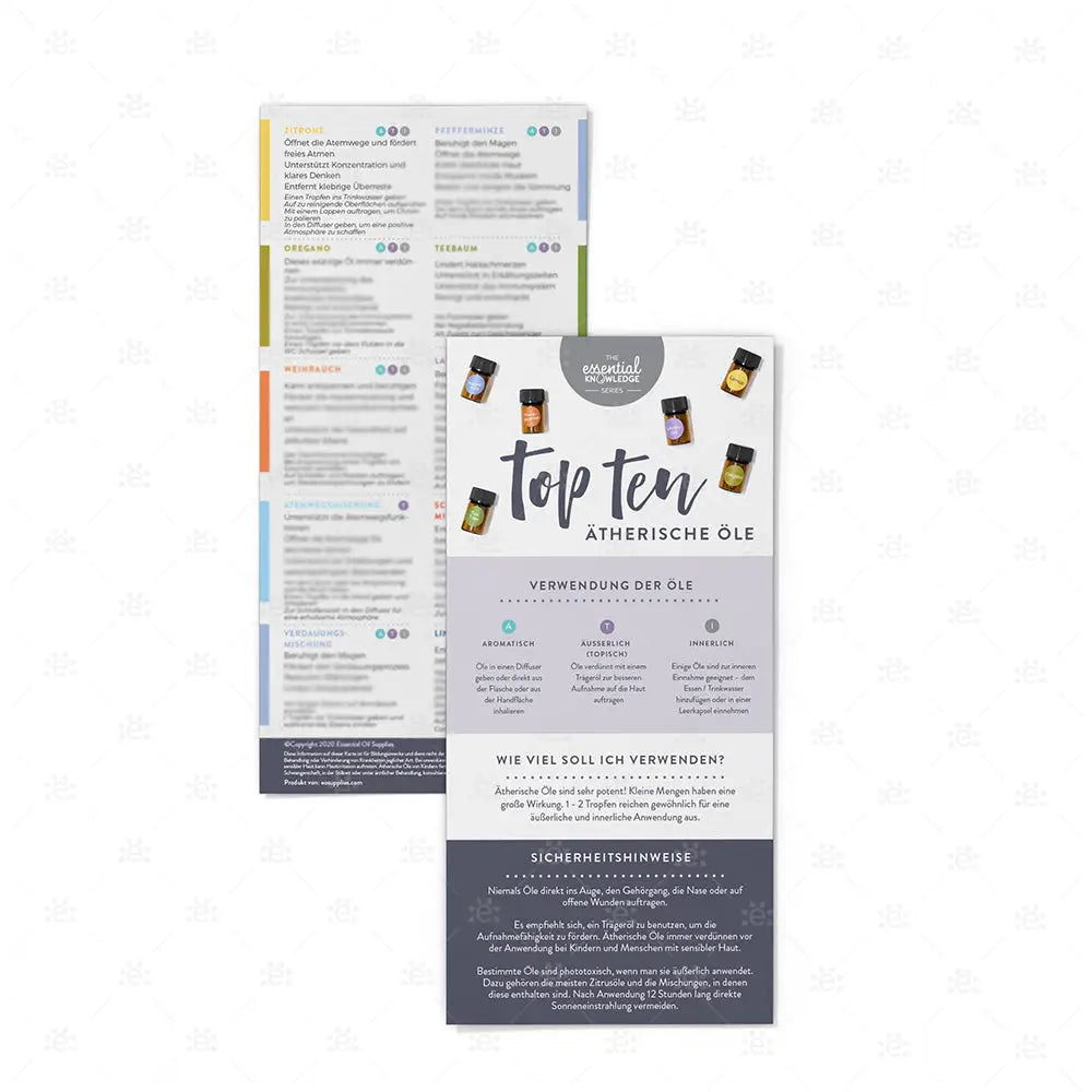 Als Teil der "Essential Knowledge Series" ist diese Infokarte eine ideale Kurzanleitung, die einen Überblick und Anwendungsvorschläge für die zehn wichtigsten ätherischen Öle enthält. Diese Karten sind perfekte Begleiter für Deine Nachschlagewerke und Leitfäden.