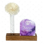 Die Blüte hat einen "Stiel" aus Baumwolle, somit sehr saugfähig, damit nimmt die Blüten sehr schnell und gut Flüssigkeit und Farbe auf.