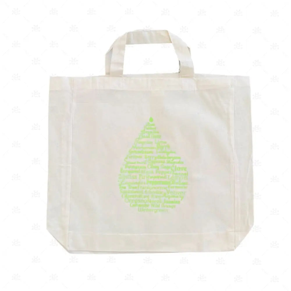 Eine Baumwolltasche mit kreativem Druck. Sämtliche Namen der Einzelöle in verschiedenen Schriften.