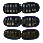 Die leicht gepolsterte Hülle schützt die Fläschchen vor Beschädigungen oder Degradierung durch Licht, und die robusten elastischen Bänder im Inneren halten die Fläschchen fest an ihrem Platz. Praktisch für unterwegs und für schnelle Demonstrationen oder ideal zum Probieren.