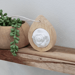 Schaffe eine ruhige Atmosphäre und vertreibe unangenehme Gerüche mit diesem schönen Rose Aroma Passivdiffuser, hergestellt aus Keramik und umweltfreundlichem Gummibaumholz.