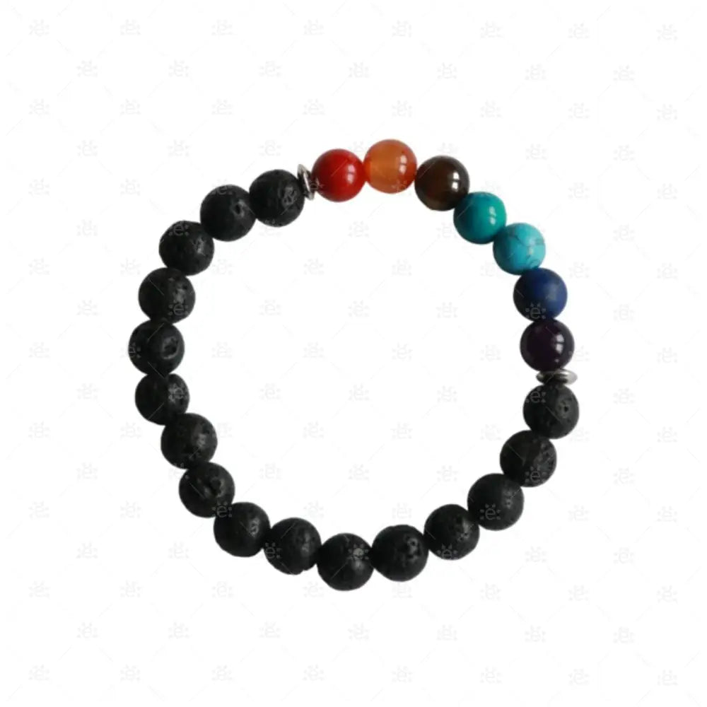Armband mit Lavasteinen und 7 Chakrasteinen: Amethyst, Lapis Lazuli, Turquoise, Chrysokoll, Tigerauge, Karneol, Roter Jasper