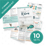 MyMakes sind ideal, um sie persönlich zu verwenden, um Ihre Verwendung von ätherischen Ölen zu ergänzen, oder um sie in einem Workshop oder einer Veranstaltungsumgebung zu schulen, in der Kunden herstellen und kreieren können, woraufhin sie dann die restliche Broschüre und Etiketten mitnehmen können, um sie zu inspirieren, ihre ätherischen Öle mehr zu verwenden. Es sind Workshop-Sets erhältlich, die 10 Broschüren und 10 Etikettenbögen enthalten.