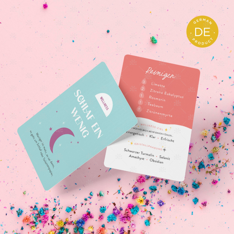 Hast Du eine Emotion, ein Wohlbefinden oder eine Situation, die ein wenig Hilfe braucht? Oder vielleicht möchtest Du ein saisonales Ambiente in deine Unterkunft bringen? Dieses Rezeptkartendeck wird dir helfen, die Umgebung um Dich herum zu verändern, während du deine Ölsammlung in vollen Zügen genießt.