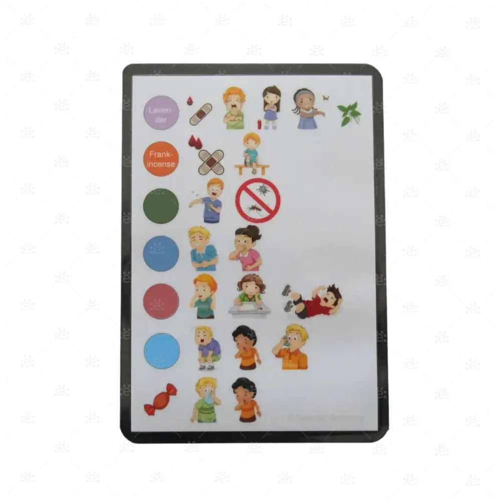 Gib diese Karte Deinem Kind zusammen mit den Ölmischungen und Helfer mit in den Kindergarten, in den Hort oder in die Schule. Eine geniale Gedankenstütze auch für die Betreuer. Die Karte ist laminiert, somit Öl- und Wasserfest.