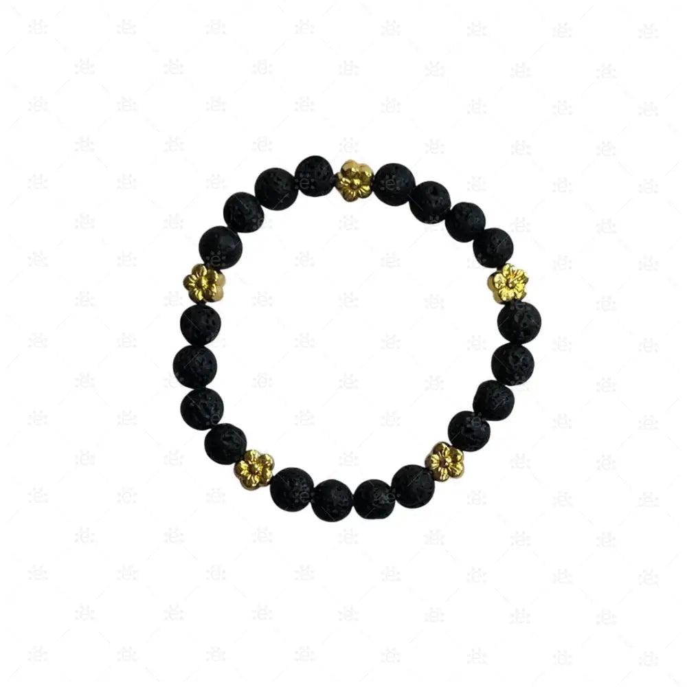 Armband mit Lavasteinen und goldfarbenen Blüemli