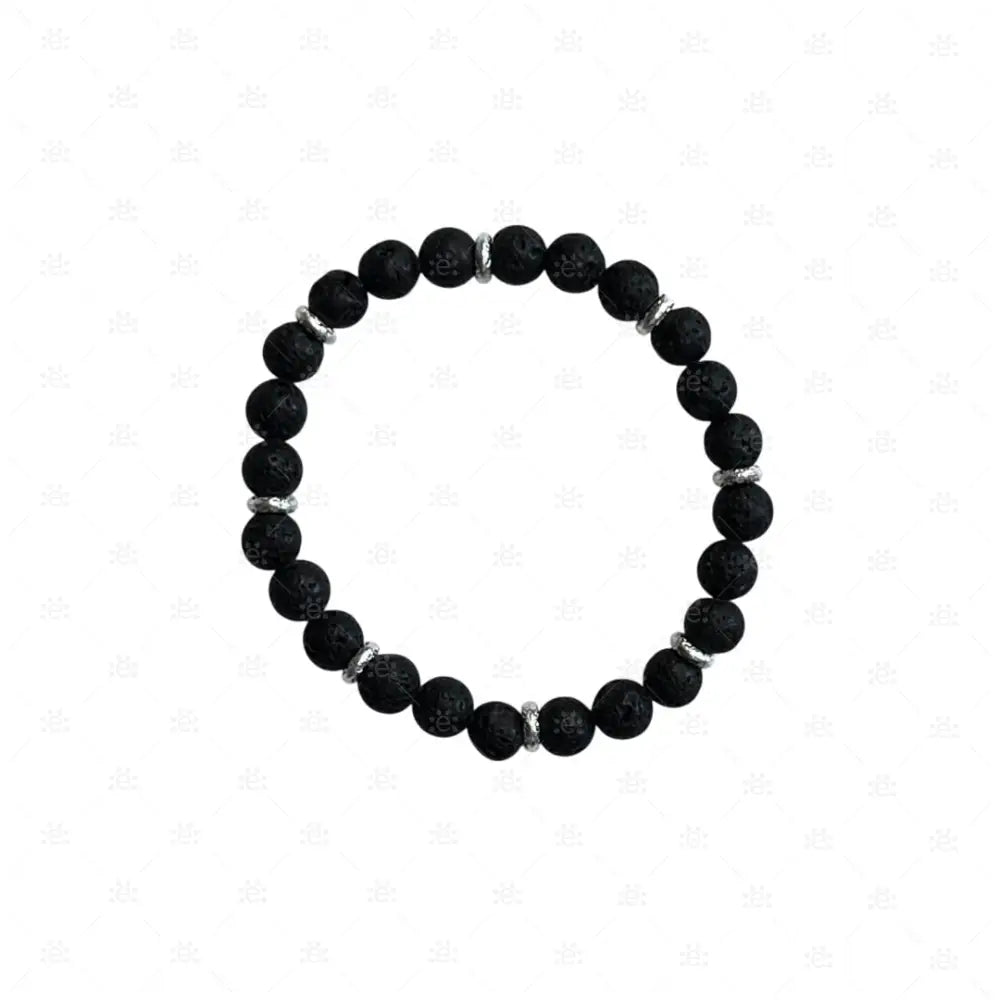 Armband mit Lavasteinen und silberfarbenen Zwischenscheiben